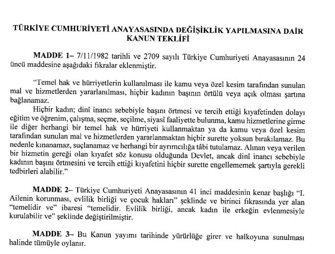 Biz başı açık ve başı kapalı kadınların özgürlüğü için bu teklifi veriyoruz.