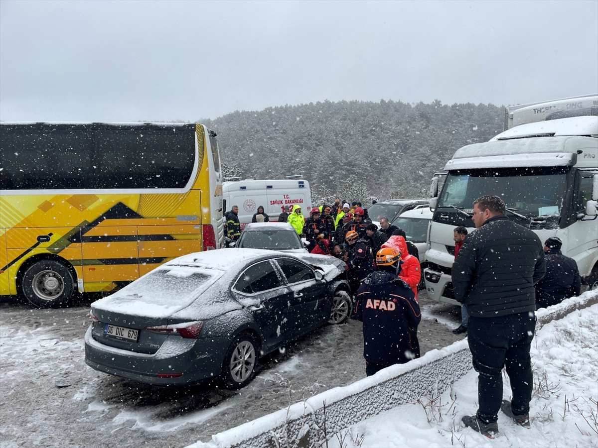 Otoyolun İstanbul istikameti Çaydurt mevkisinde 2 tır, yolcu otobüsü ve 3 otomobilin karıştığı zincirleme trafik kazası meydana geldi.