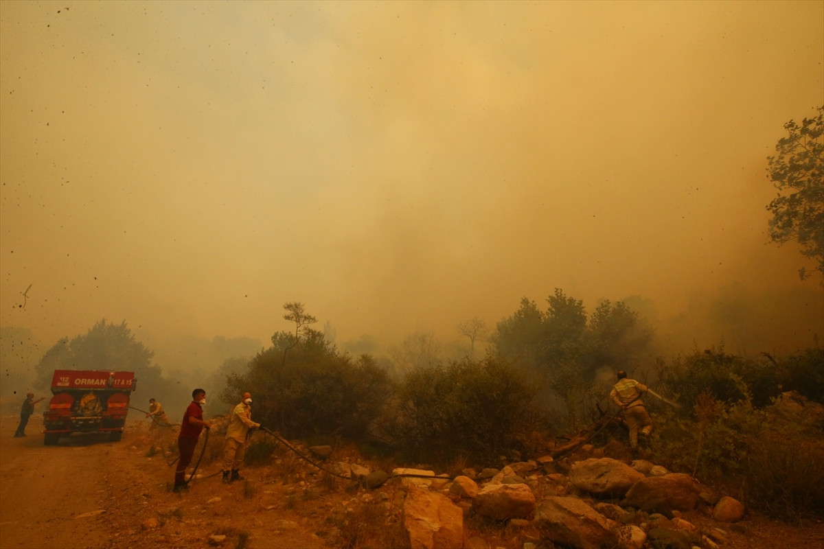 Ekipler, rüzgarın da etkisiyle büyüyen alevleri kontrol altına almak için havadan ve karadan çalışma başlattı.