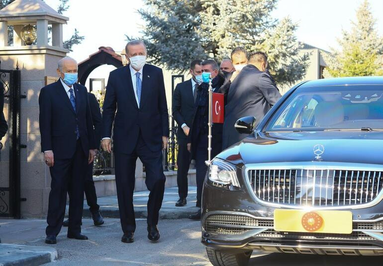 Cumhurbaşkanı Erdoğan, MHP Genel Başkanı Devlet Bahçeli'nin konutuna geldi ve iki liderin görüşmesi bir saat sürdü.