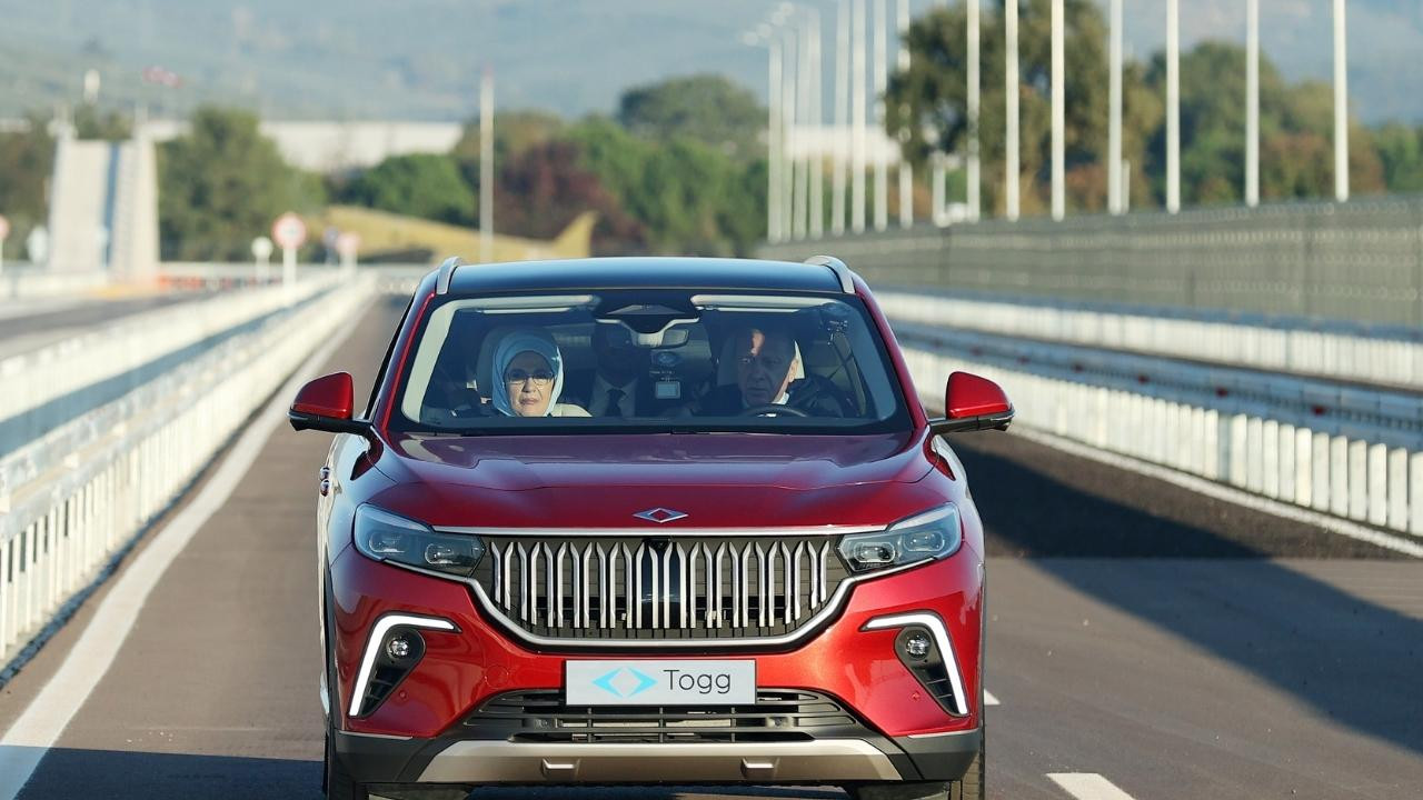 Togg logolu montlar giyen Cumhurbaşkanı Erdoğan ile eşi Emine Erdoğan, sonrasında Togg aracını test etti.
