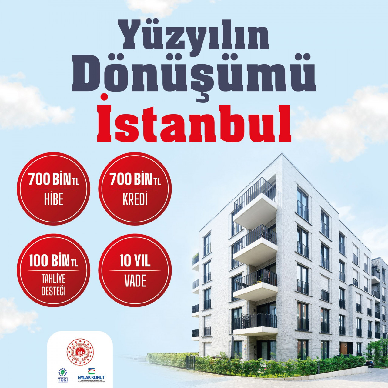 "Yüzyılın Dönüşümü İstanbul Programı"nda konuşan Cumhurbaşkanı Erdoğan, "Yarısı bizden kampanyası ile toplamda 350 bin konutun dönüşümünü gerçekleştirmeyi hedefliyoruz. Kampanyamız kapsamında her bağımsız bölüm için toplamda 1,5 milyon liralık destek vereceğiz. Bunun 100 bin lirası kira desteği olmak üzere 700 bin lirası hibe, 700 bin lirası çok uygun şartlarda kredi şeklinde verilecektir. Kredilerin ödenmesi evler tamamlandıktan sonra başlayacak ve ilk yılı faizsiz olarak tahsil edilecektir. Kalan yıllarda kredi maliyet oranı TÜFE'nin yarısı kadar olacak. Vatandaşımız alacağı bu 1,5 milyon liralık destekle inşallah evini yapacak, yeni yuvasında güvenli, huzurlu, mutlu bir şekilde oturacaktır." ifadelerini kullandı.