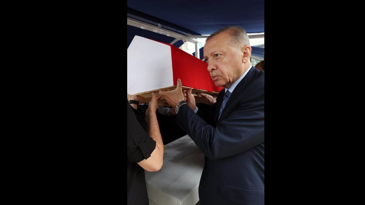 Cumhurbaşkanı Erdoğan, Barbaros Hayrettin Paşa Camisi'nde öğle vakti düzenlenen cenaze törenine Dışişleri Bakanı Hakan Fidan ile geldi.