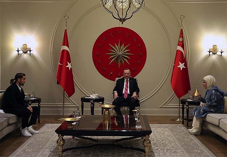 Türkiye Cumhurbaşkanı Recep Tayyip Erdoğan, eşi Emine Erdoğan'la birlikte, Fransa'nın Lille takımında forma giyen Milli Futbolcu Yusuf Yazıcı'yı kabul etti.