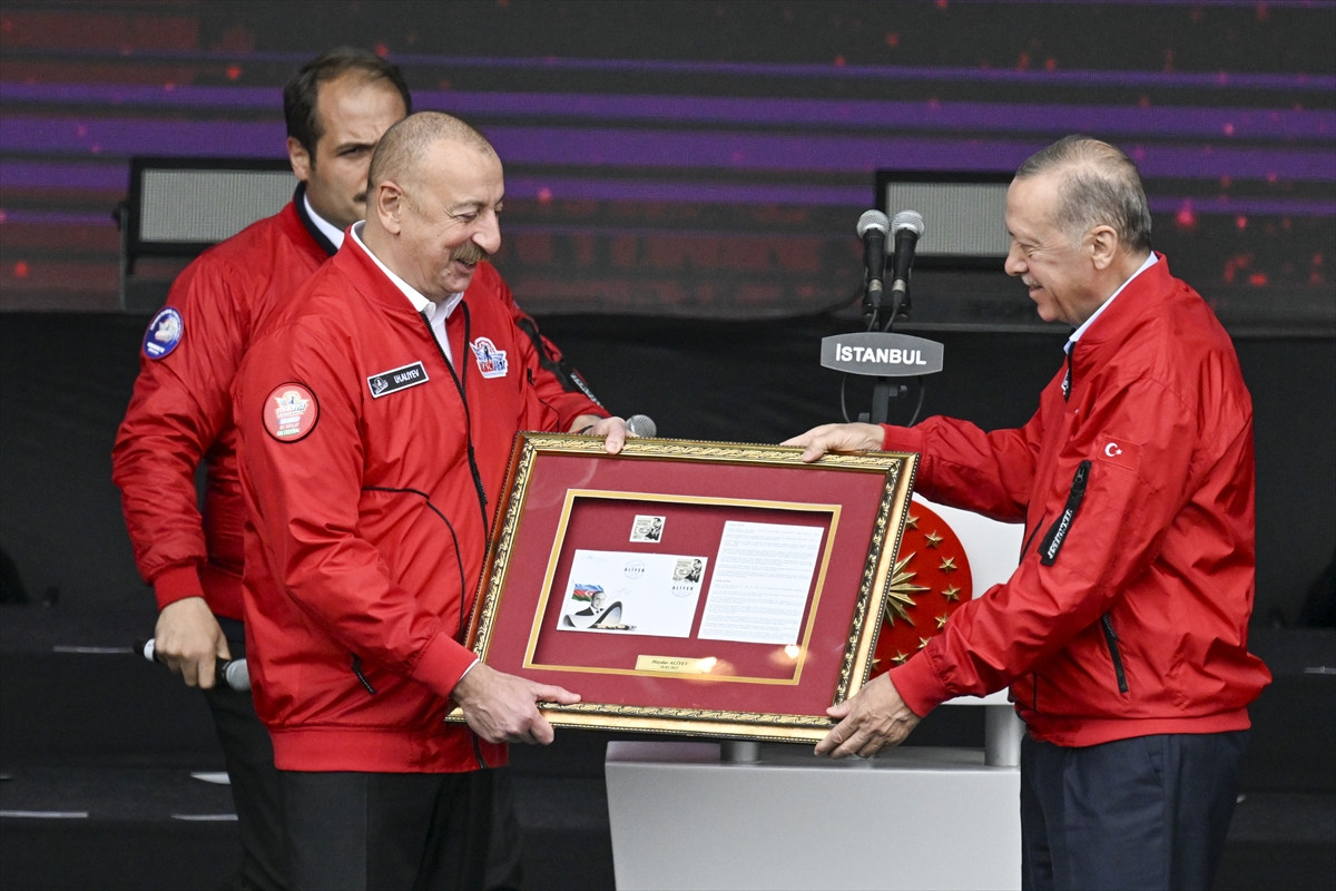 Cumhurbaşkanı Recep Tayyip Erdoğan, Azerbaycan Cumhurbaşkanı İlham Aliyev ile Atatürk Havalimanı'nda düzenlenen TEKNOFEST'i ziyaret etti.