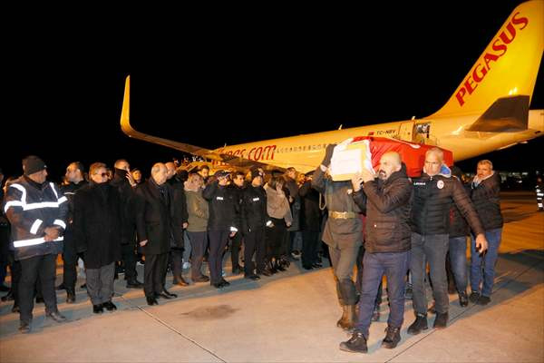 Adıyaman'dan ülkeye getirilen 8 öğrenci, 1 öğretmen ve 3 veli olmak üzere 12 kişinin cenazesini, Ercan Havalimanı'nda aileleri, arkadaşları ve sevenleri karşıladı.