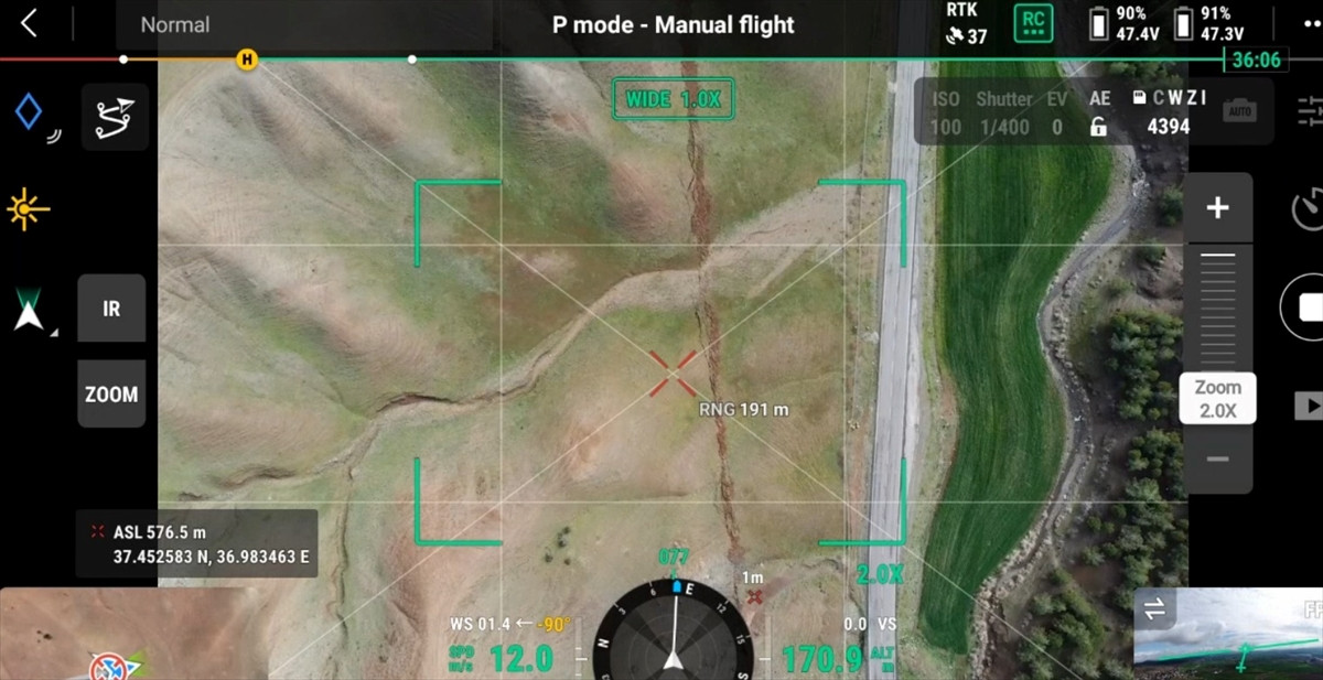 Endüstriyel olarak tasarlanan insansız hava aracına entegre edilen yüksek çözünürlüklü algılayıcılar kullanarak verileri topladıklarını anlatan Özcan, "Çalışmada 400 kilometrelik hattı tamamen taradık. Bu kapsamda optik verilerle gözle görebildiğimiz kısımları olabildiğince takip ettik. Burada takip edemediğimiz, orman altı, tarım, nadasa bırakılmış alanlarda veya şehir merkezlerindeki yerlerde yüzey kırığının takibi için termal veriyi kullandık." diye konuştu.