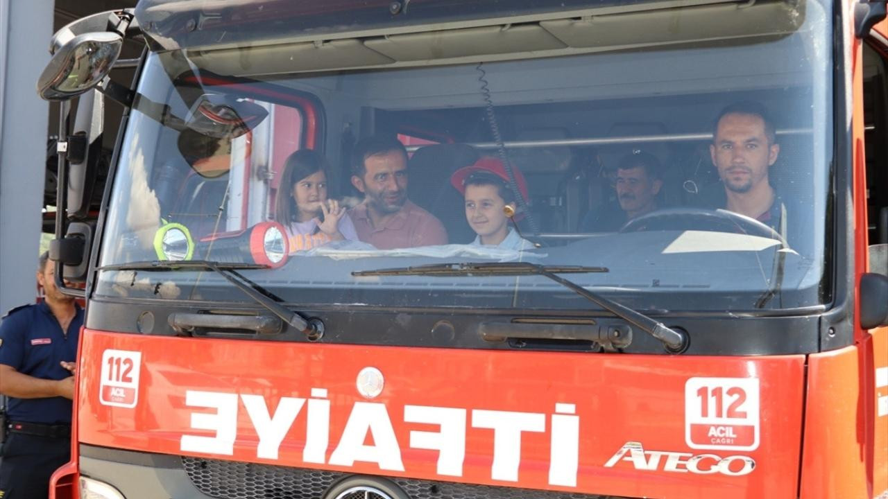 Çocuklar, daha sonra itfaiye aracına bindirilerek bir süre gezdirildi.