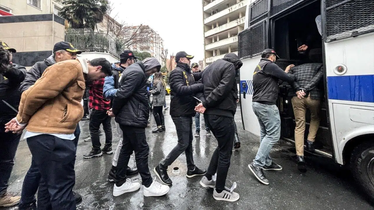 Asayiş Şube Müdürlüğünden polis kontrolünde çıkarılarak otobüslere bindirilen aralarında kadınların da bulunduğu 113 şüpheli Çağlayan'daki İstanbul Adliyesi'ne götürüldü.