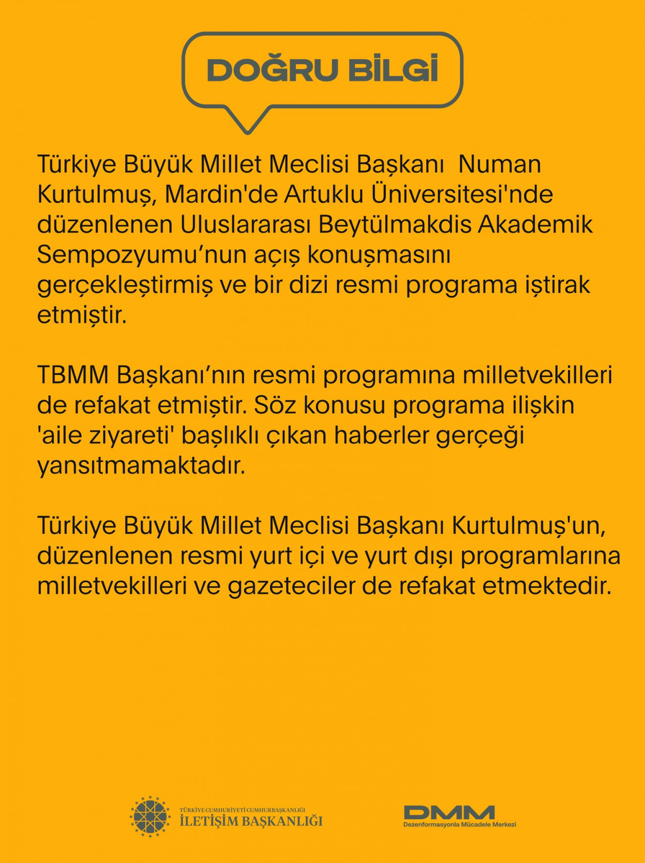 Dezenformasyonla Mücadele Merkezi, TBMM Başkanı Numan Kurtulmuş'un Mardin'de gerçekleştirdiği bir dizi programa ilişkin paylaşımda bulundu.