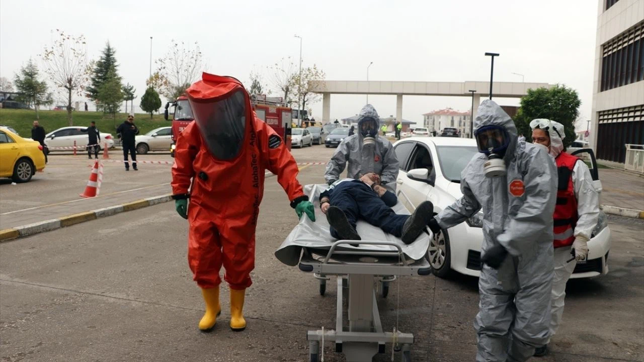 Senaryoya göre, hastane bahçesinde kimyasal zehirlenme yaşayan yaralılara ve kimyasal yük taşıyan kamyonetin devrilmesi sonucu yaralananlara müdahale edildi.