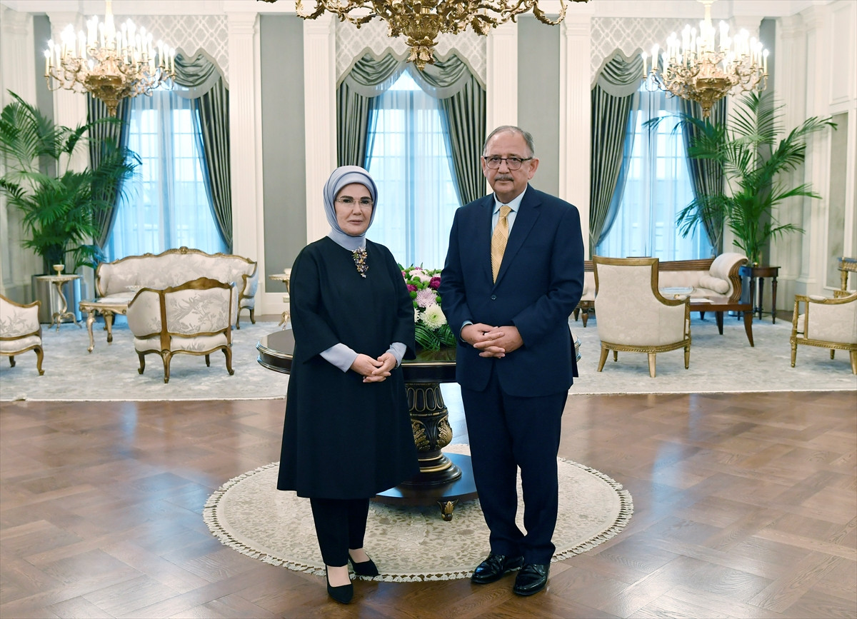 Emine Erdoğan, Cumhurbaşkanlığı Külliyesi Devlet Konukevi'nde, Çevre, Şehircilik ve İklim Değişikliği Bakanı Mehmet Özhaseki ile görüştü.