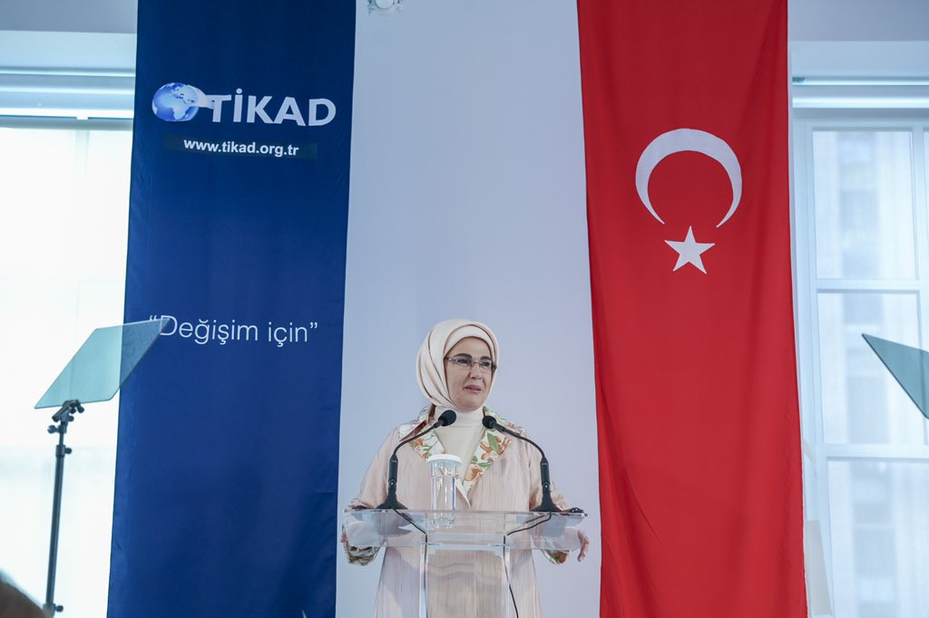 Manhattan'daki Rockefeller Center'da Türkiye İş Kadınları Derneğinin (TİKAD) düzenlediği "Dünyaya Yön Veren Kadınlar" etkinliğine katılan Erdoğan, iş dünyası temsilcilerine ve kadın girişimcilerden oluşan davetli gurubuna konuştu. Emine Erdoğan, "Bizim medeniyetimizde, kadınlar ve erkekler beraberce, tarihin öznesi konumunda yer almışlardır. Fakat, ne yazık ki, üstlendikleri görevler, tarih yazımında ön plana çıkarılmadığından, yeterince bilinmez." dedi. "Bizim topraklarımız, dünyanın bütün kadınlarına umut olacak, destansı mücadelelerle doludur." diyen Erdoğan, çevresine yön veren kadınların dünyaya duyurulmasını "çok önemsediğini" ifade etti.