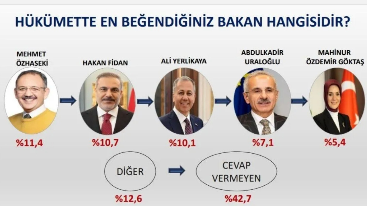 HBS Araştırma şirketi, yapılan anketin sonuçlarını kamuoyuyla paylaştı. Anket şirketi katılımcılara, "Hükümette en beğendiniz bakan hangisidir?" diye sordu.