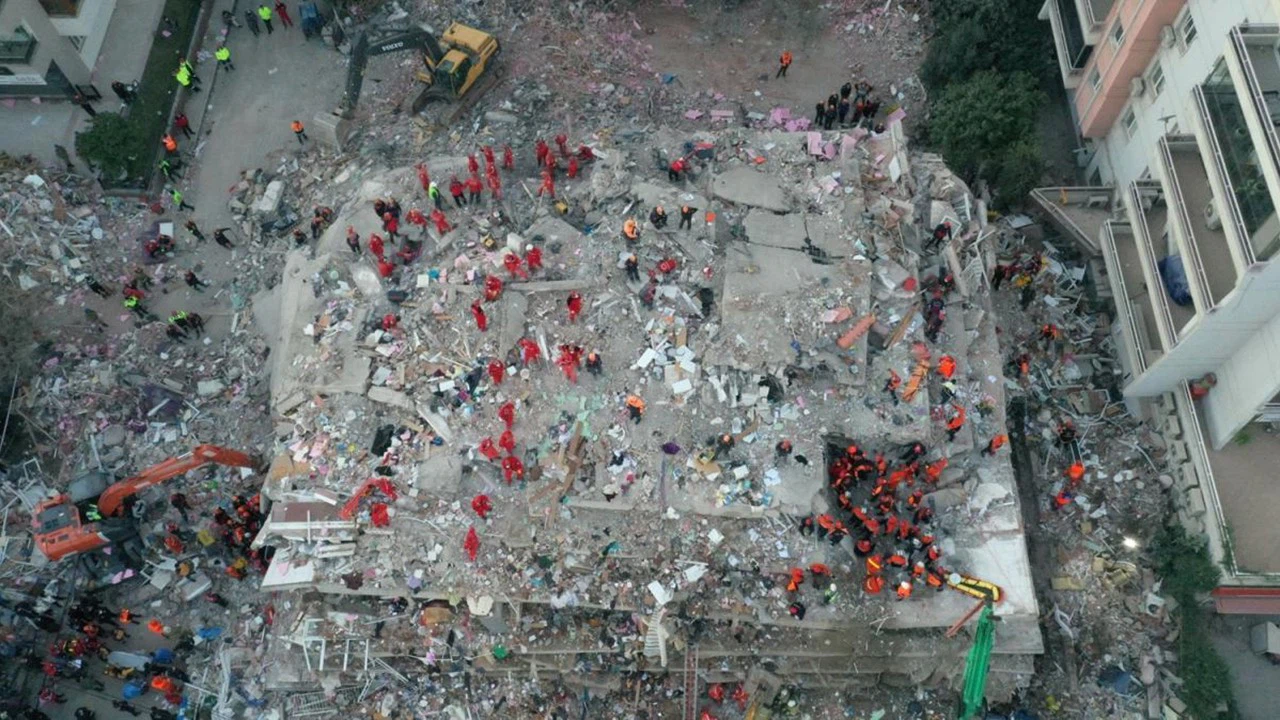 İzmir'in Seferihisar açıklarındaki depremden en fazla etkilenen Bayraklı ilçesinde 9 binada arama kurtarma çalışmaları devam ediyor.