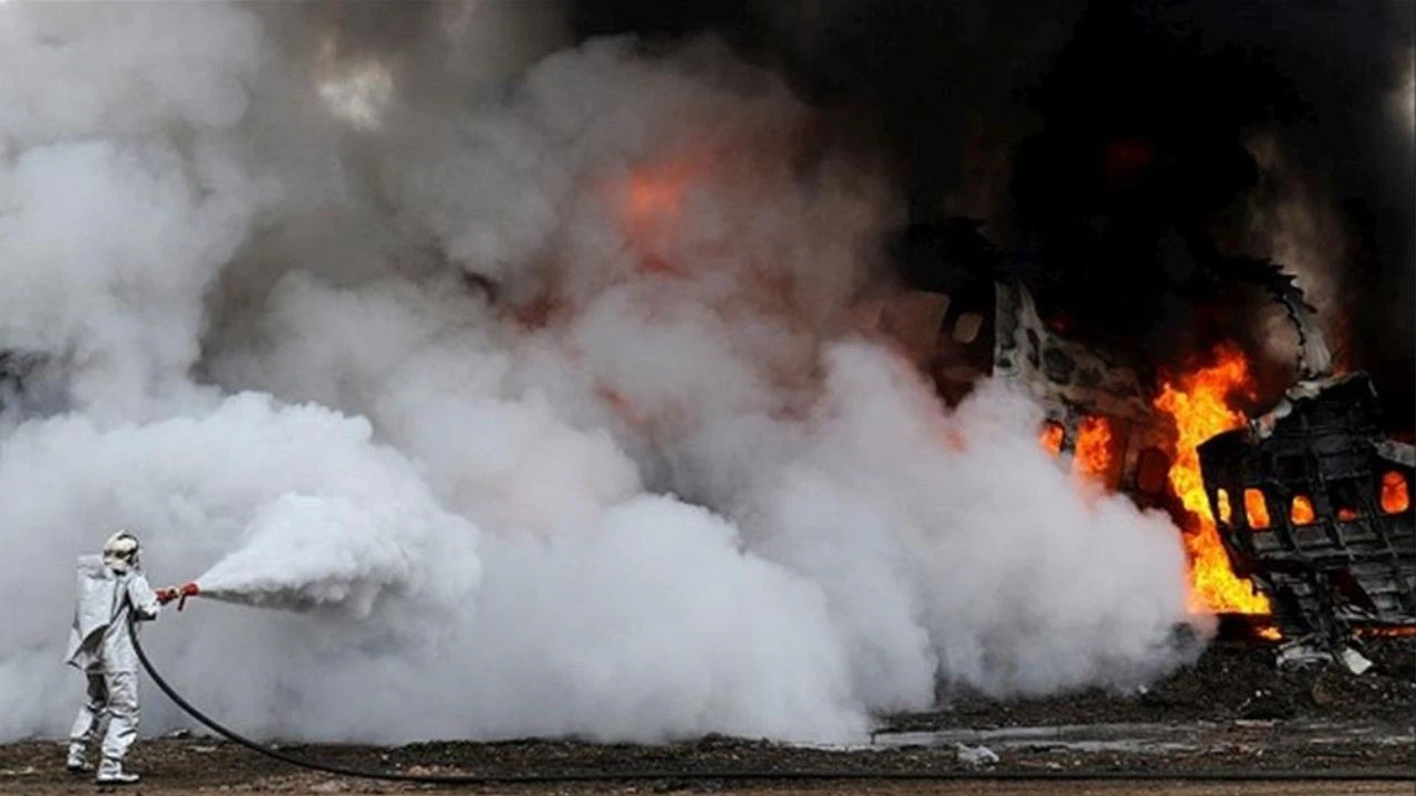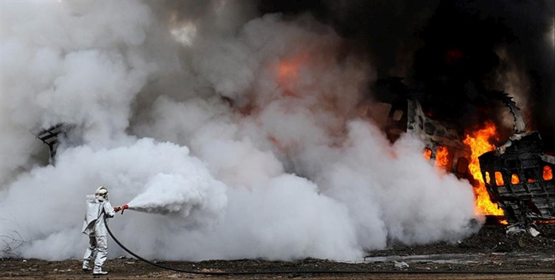 Tatbikatta kullanılan uçak maketi ARFF personelinin el emeği