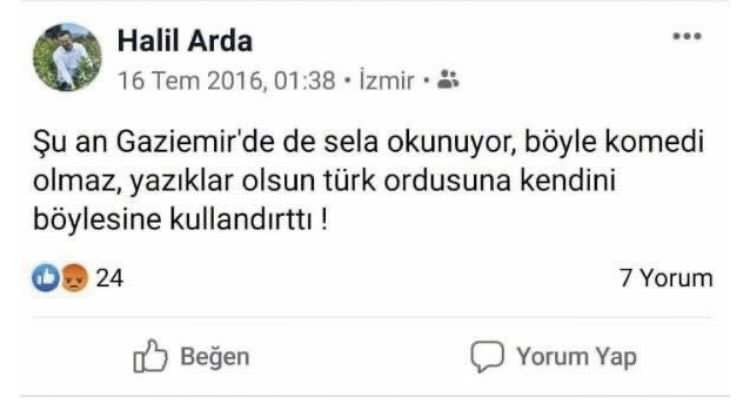 Öte yandan CHP'li belediye başkanının bu ilk vukuatı değil. Cumhurbaşkanı Recep Tayyip Erdoğan'a yönelik hakaretlerde bulunan ve 15 Temmuz gecesi skandal paylaşımlara imza atan Arda için 34. Asliye Ceza Mahkemesi'nde dava açıldı.