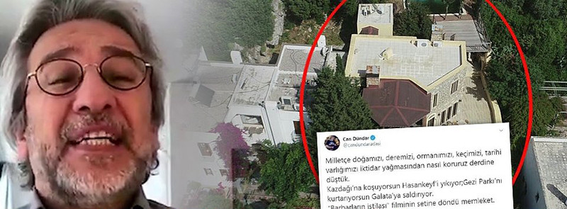 Devlet arazini işgal ederek villasını büyüten Dündar, “Milletçe doğamızı, deremizi, ormanımızı, keçimizi, tarihi varlığımızı iktidar yağmasından nasıl koruruz derdine düştük” sözleriyle güldürdü.