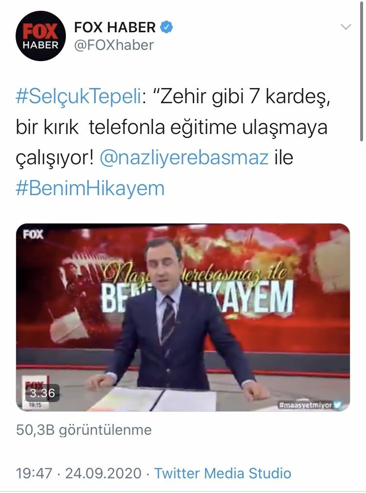 Tuzla Belediye Başkanı Şadi Yazıcı; FOX TV Ana Haber Spikeri Selçuk Tepeli'yi eleştirdi. Yazıcı, sosyal paylaşım sitesi Twitter'daki şahsi hesabından Selçuk Tepeli'nin "Zehir gibi 7 kardeş, bir kırık telefonla eğitime ulaşmaya çalışıyor" şeklindeki sözlerini eleştirdi.