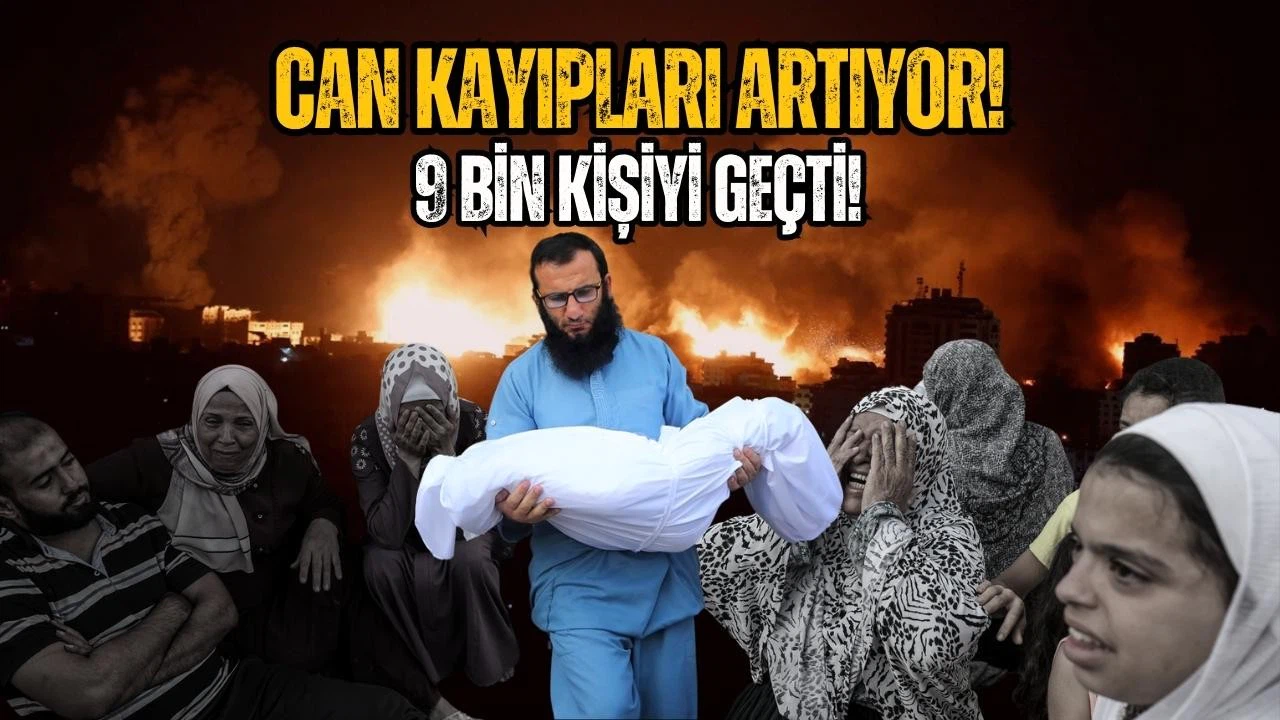 Gazze'deki Sağlık Bakanlığı, "İsrail'in saldırılarında ölenlerin sayısı son 24 saatte 265 artarak 9 bin 61'e yükseldi. Ölenlerin 3 bin 760'ı çocuk, 2 bin 326'sı kadın." açıklamasında bulundu.