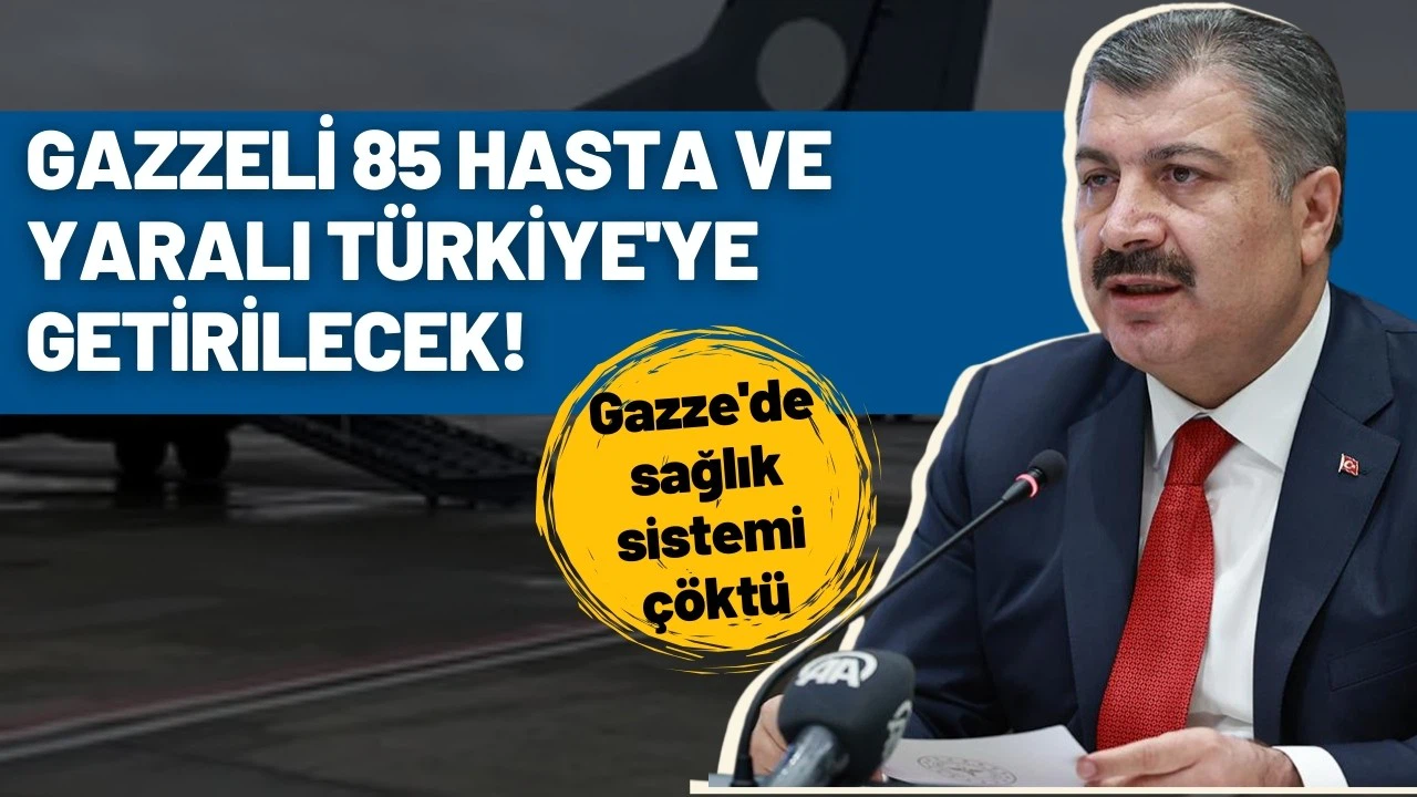 "Gazzeli 85 hasta ve yaralı bu akşam Mısır'dan Türkiye'ye getiriliyor. 106 kişilik refakatçi grubun eşlik ettiği hastalar, ülkemizde tedavi altına alınacak. Bilindiği gibi Gazze'de sağlık sistemi çökmüş durumda."