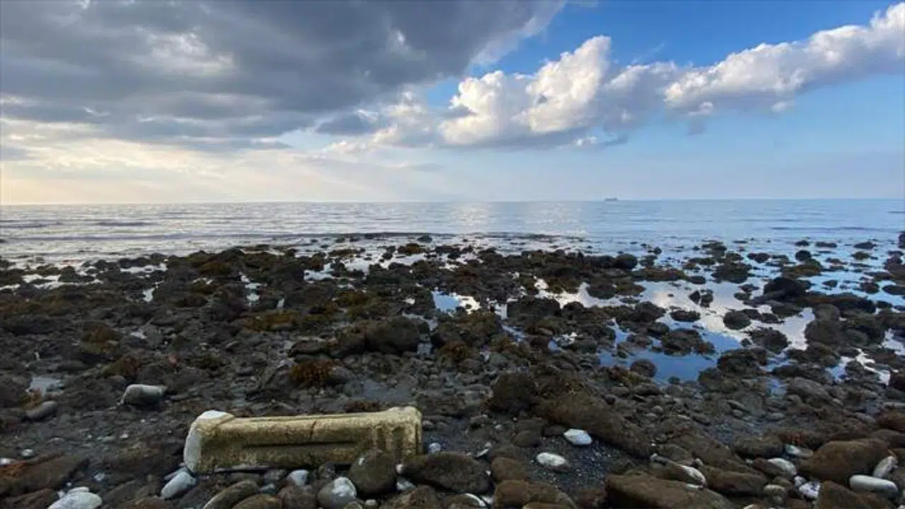 Çekilmenin ardından Arsuz sahilinde taşlar ve kayalıklar meydana çıktı.