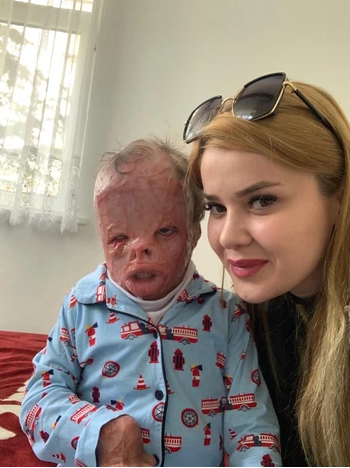 Azerbaycan'daki evlerinde çıkan yangında alevlerin arasında kalan kardeşini kurtarmak isterken vücudunun bir kısmı yanan İsmail İsmailzade'ye, hayırseverlerin desteğiyle getirildiği Şanlıurfa'da vücudundan alınan dokular nakledildi.