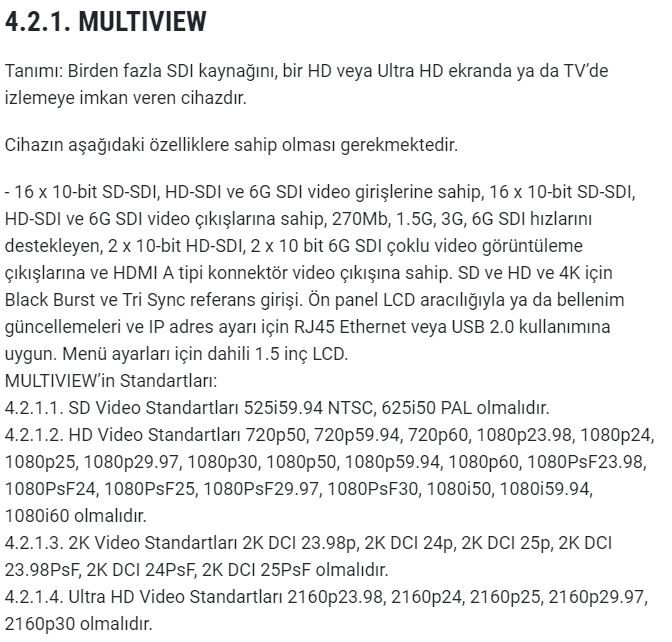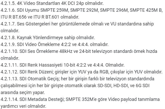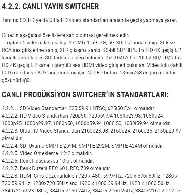 Haber içerik yazılımı, yazılımın barındığı sunucu ve yayın arşivleme donanımlarının yer aldığı 'İçerik Odası' ile ilgili detayların yer aldığı şartnamede istenen malzemeler şöyle sıralandı: