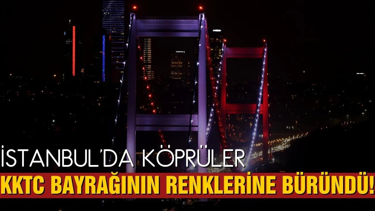 İstanbul'un sembol noktalarından olan her üç köprü, KKTC bayrağının renkleri olan kırmızı ve beyaza büründü.