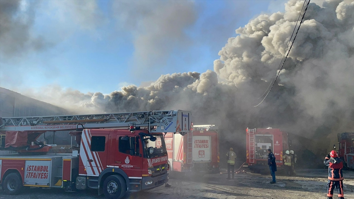 İstanbul Sultangazi'de otomobil yedek parçası üreten bir fabrikada çıkan yangına müdahale ediliyor.