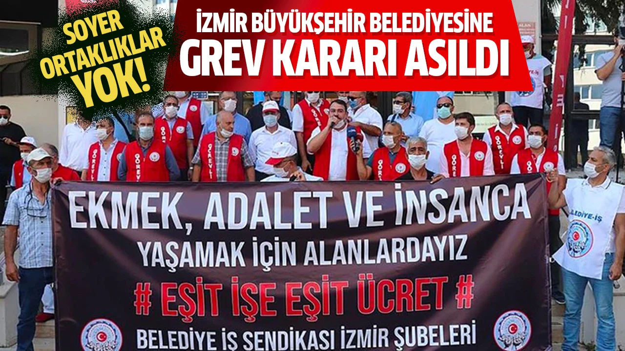 Konuşmaların ardından sendika yetkilileri tarafından İzmir Büyükşehir Belediyesi girişine grev kararı asıldı.