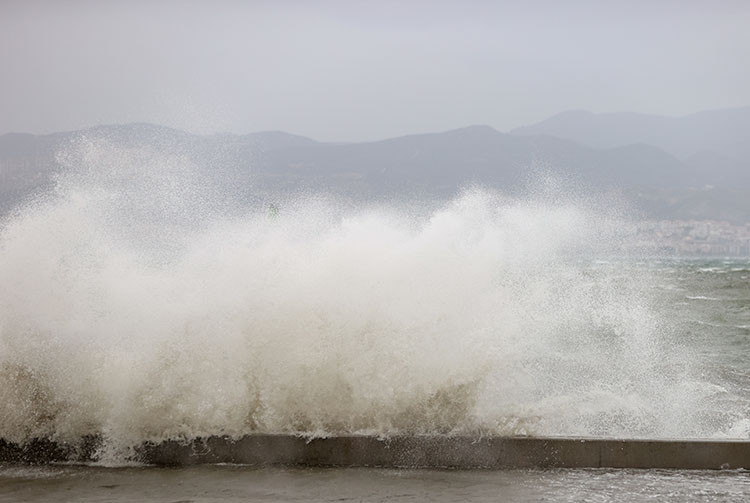 Suyun deniz kenarındaki yürüyüş yolunun yanı sıra kara yoluna da ulaştığı görüldü.