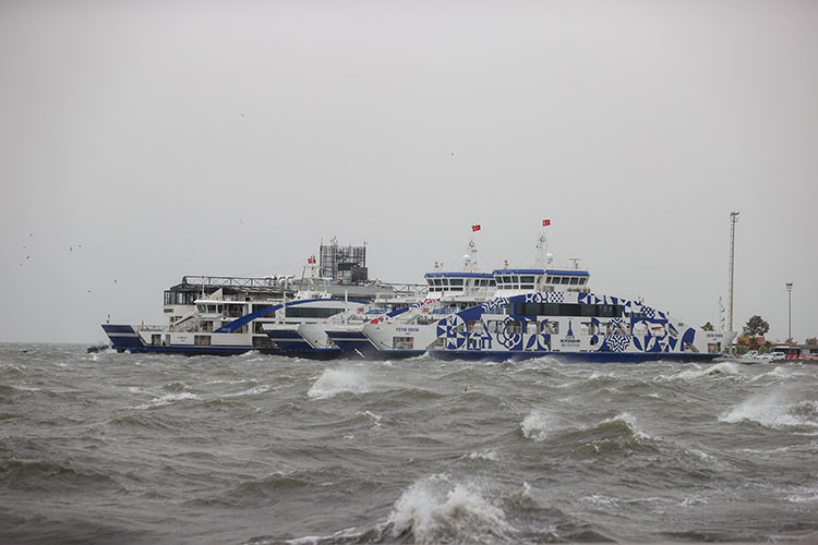 İzmir'de etkili olan fırtına nedeniyle vapur ve arabalı vapur seferleri, 08.25'te iptal edilmişti.