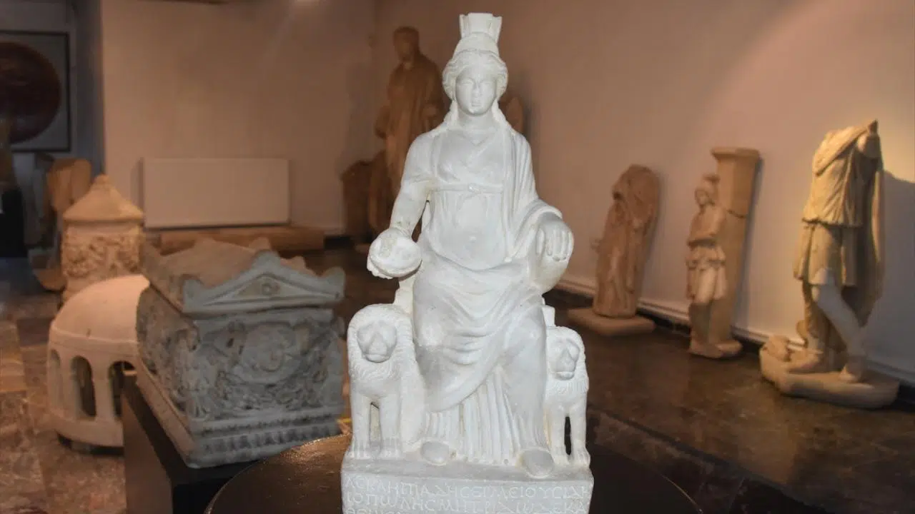 Uzmanlarca milattan sonra 3. yüzyıla tarihlendirilen, prehistorik dönemlerden itibaren Akdeniz havzasında, özellikle Anadolu'da "ana tanrıça" olarak tapınılan Kibele'nin 1700 yıllık heykelinin iki yanındaki aslanlar, doğa ve hayvanlar üzerindeki hakimiyetini sembolize ediyor.