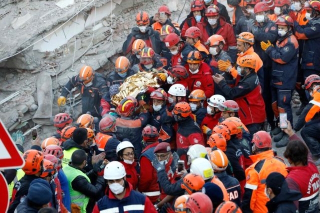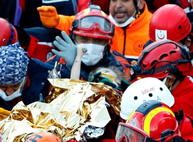 İzmir'in Seferihisar ilçesi açıklarındaki depremde Bayraklı'da yıkılan Doğanlar Apartmanı'nın enkazı altında kalan 3 yaşındaki Elif Perinçek, 65 saat sonra yaralı olarak kurtarıldı. Kurtarıldığı sırada bilinci açık olan minik Elif'in kendisini ambulansa götüren görevlilerin elini tuttuğu anlar ise oldukça dikkat çekti.