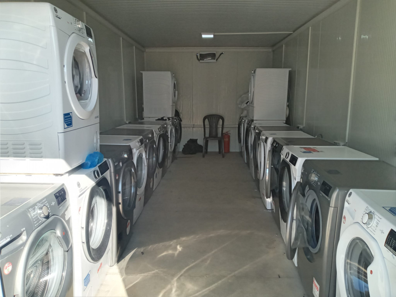 Bir başka kaldırımda oturan iki kadına denk geldim. (Hatice Çelik ve Menekşe Demirci) Kapısı açık içinde çamaşır makineleri olan iki konteynerin sorumlularıymış...