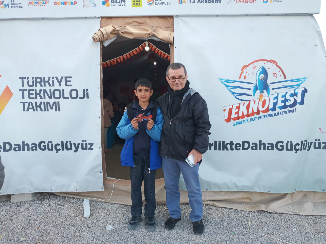 Üçüncü çadırın kapısında TEKNOFEST yazıyor. İzin alıp içeri girdim. Bir süre ne yaptıklarını izledim. Çocuklar maket uçak, helikopter balon monte ediyor, boyuyordu.