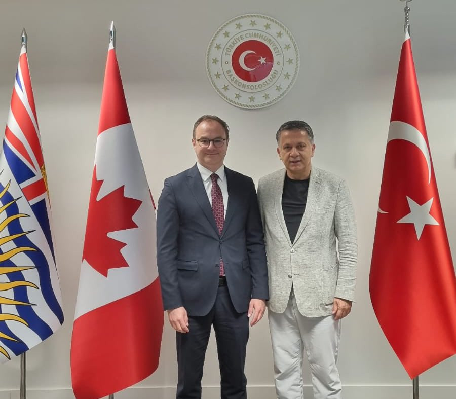150 bine yakın Türk vatandaşının ikamet ettiği Kanada'yı ziyaret eden Küresel Gazeteciler Konseyi Genel Başkanı Mehmet Ali Dim, Türkiye'nin Vancouver Başkonsolosu Emrah Kurt ve Toronto Başkonsolosu Can Yoldaş'ı makamında ziyaret etti.