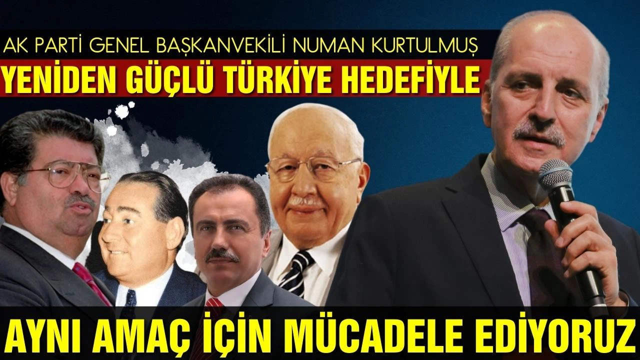 Kurtulmuş, davalarının iki temel ayağı bulunduğunu, bunlardan birinin yeniden güçlü Türkiye’yi kurma hedefi olduğunu ve AK Parti'nin bunun için mücadele ettiğini vurgulayarak, Adnan Menderes, Turgut Özal, Necmettin Erbakan ve Muhsin Yazıcıoğlu'nun da aynı amaç için mücadele ettiğini kaydetti.