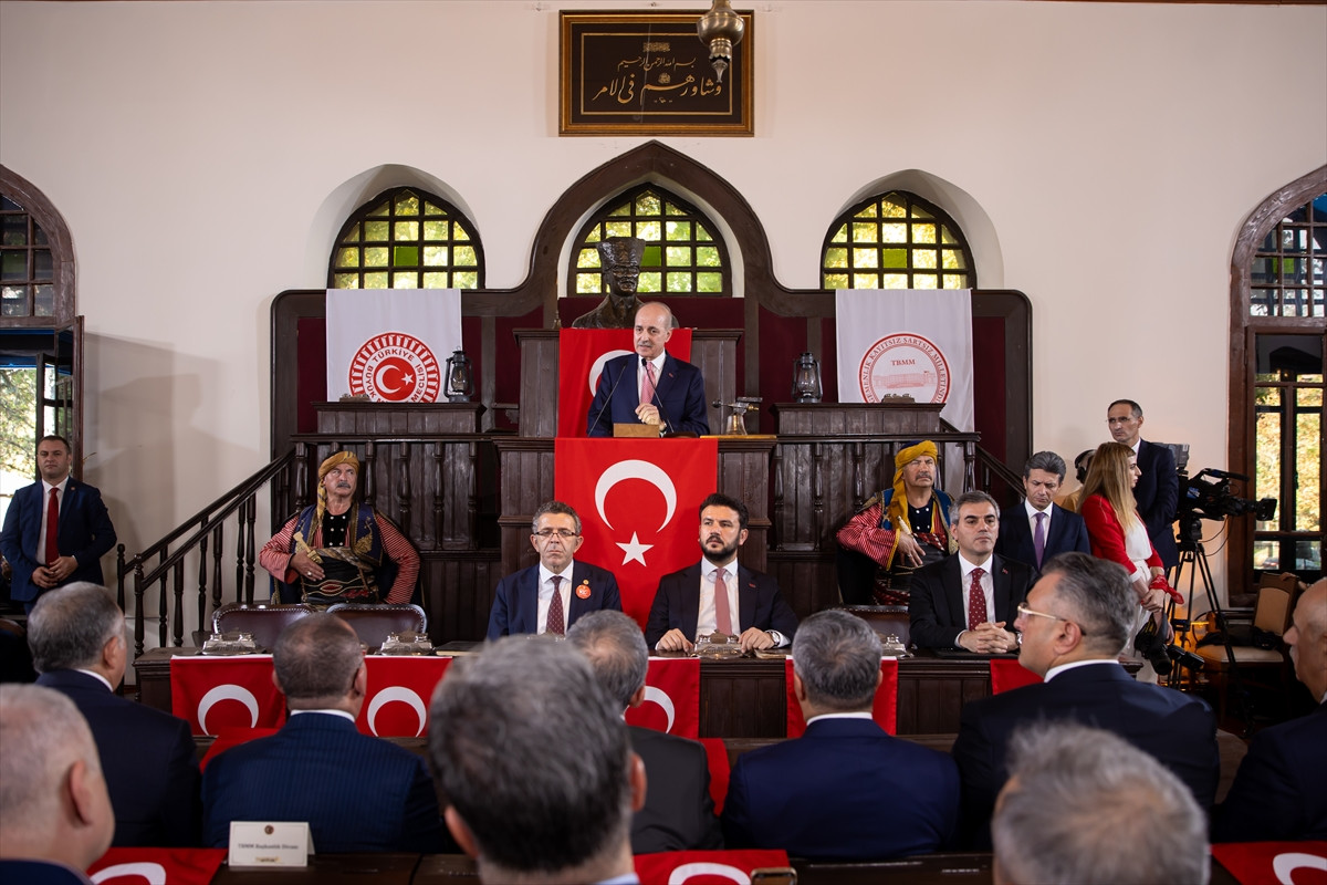 Meclis-i Mebusan’ın son, Türkiye Büyük Millet Meclisi’nin ilk binası olan Birinci Meclis Binası’nda tarihi kararlar alındığını dile getiren Kurtulmuş, silah arkadaşlarıyla 19 Mayıs 1919’da Samsun’a ayak basan Mustafa Kemal Paşa’nın, Cumhuriyetin ilk ateşini yaktığını belirtti. Kurtulmuş, Amasya Genelgesi, Erzurum Kongresi ve Sivas Kongresiyle Türkiye’de Milli Mücadele ateşinin alevlendiğini ve milletin büyük bir varoluş mücadelesine kalkıştığını vurguladı.