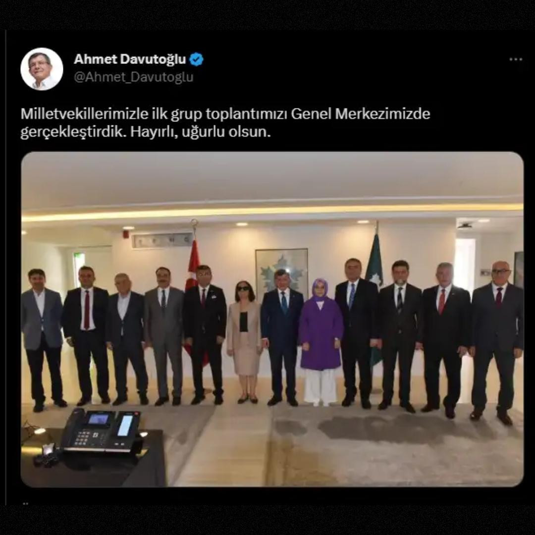 Ahmet Davutoğlu Twitter’dan, “Milletvekillerimizle ilk grup toplantımızı Genel Merkezimizde gerçekleştirdik. Hayırlı, uğurlu olsun” diyerek fotoğraf paylaştı.