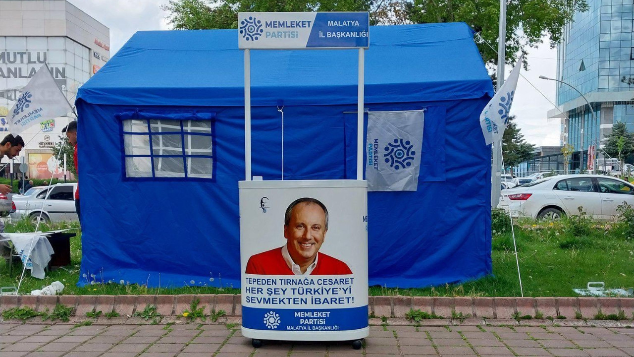 Malatya'da deprem sonrası maddi yetersizlikten dolayı konteynere geçemeyen Memleket Partisi'nin Malatya İl Başkanlığı olarak kurduğu çadır çalındı.