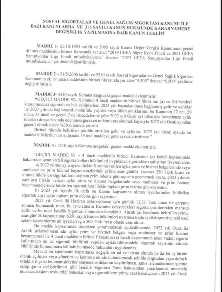 Teklifle; UEFA tarafından 2023 yılındaki Şampiyonlar Ligi finalinin İstanbul'da yapılması gerekçesiyle; yapılan değişiklikle, 2021 UEFA Şampiyonlar Ligi finali için sağlanan istisnanın, yeni takvime göre 2023 finali için geçerli olması amaçlanıyor.