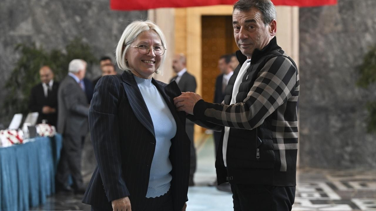 MHP'li Şanlıtürk'e rozetini oğlu Naci Emir Şanlıtürk taktı.