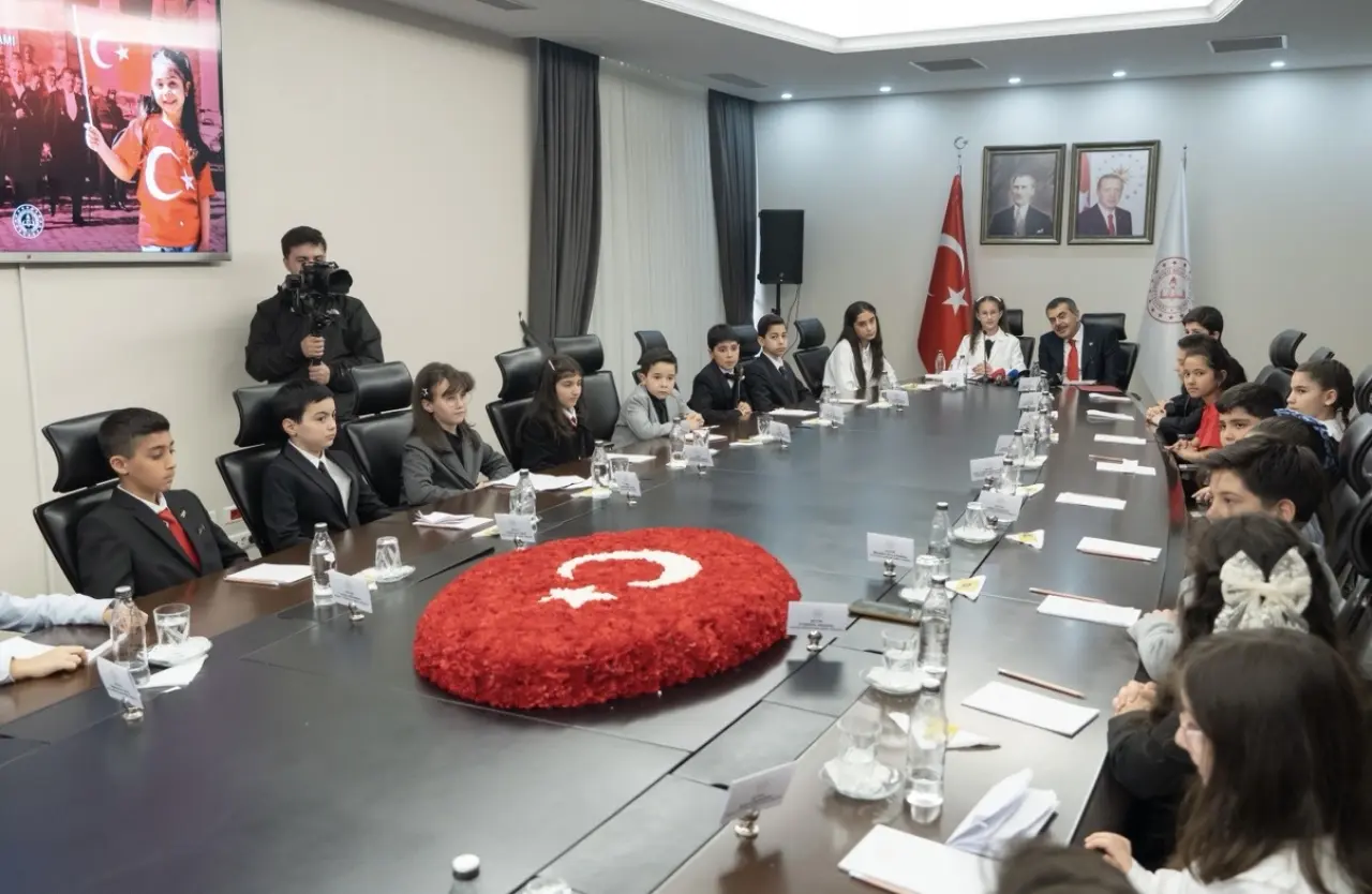 Milli Eğitim Bakanı Yusuf Tekin, Türkiye Büyük Millet Meclisinin açılışının 106. yıl dönümü ile 23 Nisan Ulusal Egemenlik ve Çocuk Bayramı dolayısıyla çeşitli okullardan gelen öğrencileri kabul etti. Anıtkabir'deki törenlerin ardından Bakanlığa gelen Tekin, burada ellerinde Türk bayrakları taşıyan çocuklar ve öğrencilerden oluşan bando takımı tarafından karşılandı.