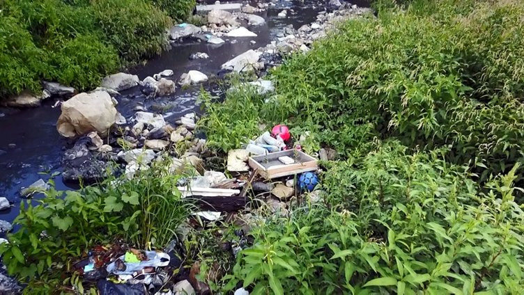 İki kıyısında bulunan bataklığı andıran otluk alanda içki şişelerinden, hafriyat atıklarına, futbol toplarına, ahşap kaplamalara kadar her türlü katı atık bulunuyor.