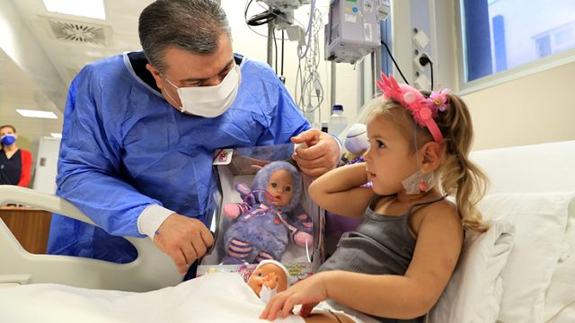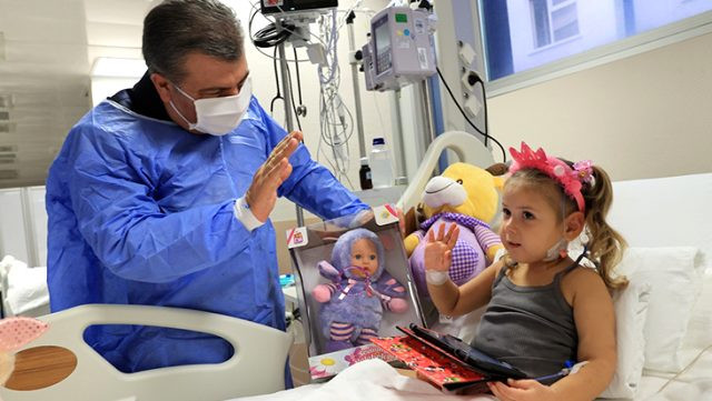 Bakan Koca, daha sonra yoğun bakım ünitesindeki Minik Ayda'nın yanına giderek kendisine oyuncak bebek verdi.