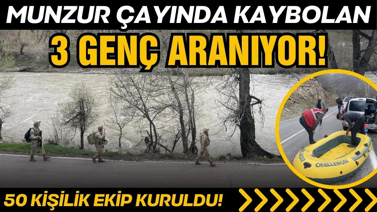 Kayıp 3 gencin bulunması için ekipler, Munzur Çayı ve Uzunçayır Baraj Gölü'nde bot ve dron yardımıyla ağaçlık ve kayalık alanlarda arama gerçekleştiriyor.
