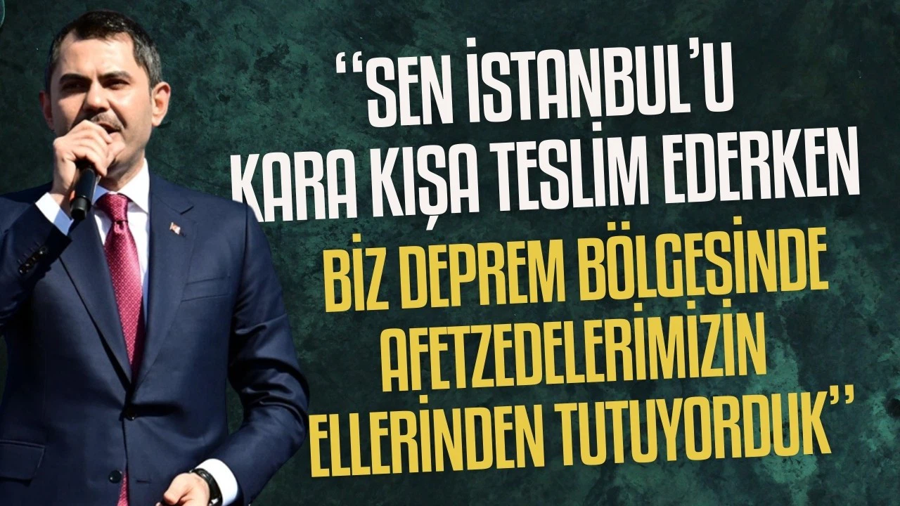 "Bu iş bilmez yönetim, tek bir eser üretemediği gibi bir de bizim projelerimizi eleştiriyorlar. Sen İstanbul'u kara kışa teslim ederken biz Elazığ'da Malatya'da afetzedelerimizin ellerinden tutuyorduk. Sen kapalı kapılar ardında gizli toplantılar yaparken biz İstanbul'a 365 milyar liralık yatırım yapıyorduk."