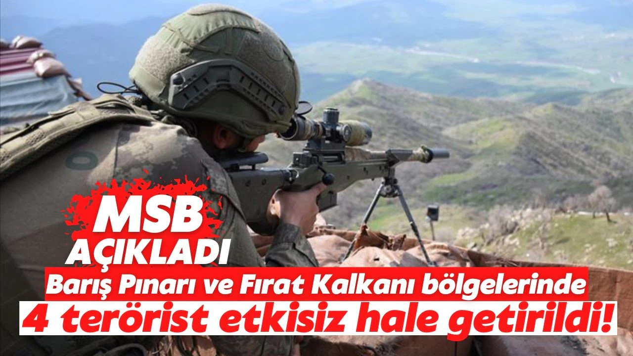 Barış Pınarı ve Fırat Kalkanı bölgelerine saldırı hazırlığında olan 4 PKK/YPG'li teröristin etkisiz hale getirildiği bildirildi.